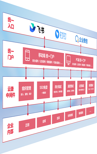 对协作平台提供支持服务,,,支持企业应用与协作平台对接,,,,包含组织同步、、、、消息集成、、、、待办集成等。。支持目前主流的协作平台:钉钉、、企微和飞书。。